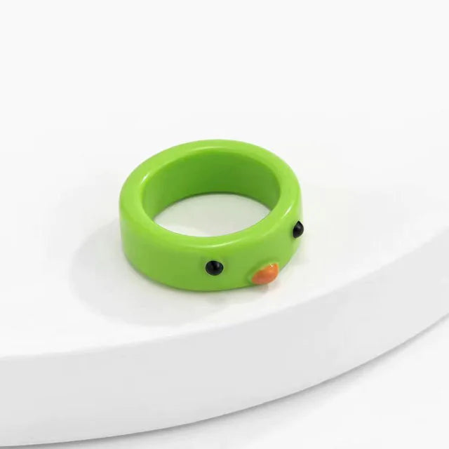 Looking for a unique and eye-catching ring to add to your jewelry collection? Look no further than this adorable Colorful Acrylic Ring! Featuring a cute cartoon frog design, this ring is sure to put a smile on your face every time you wear it. Made of high-quality acrylic, it's lightweight and comfortable to wear. Whether you're treating yourself or looking for a fun gift for a friend, this Colorful Acrylic Ring is a great choice!