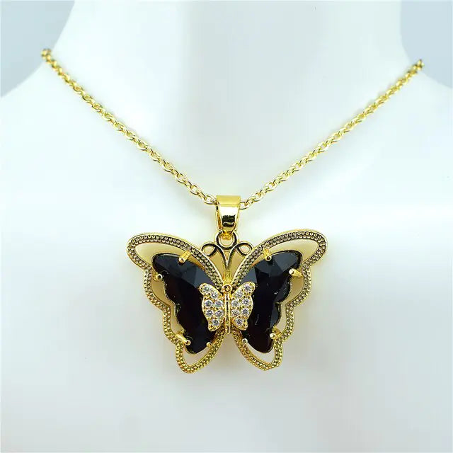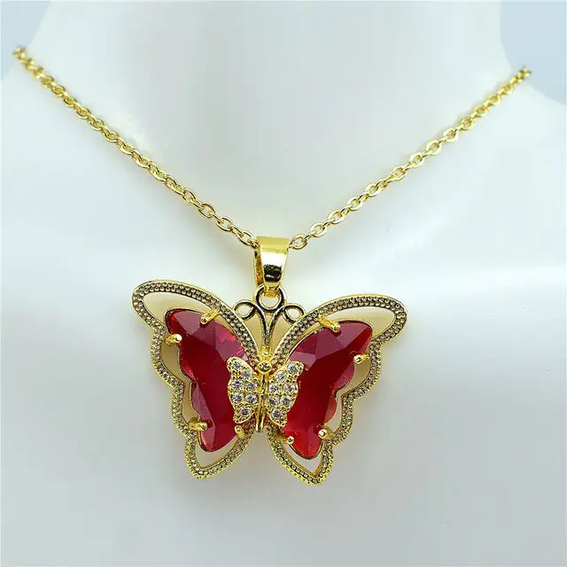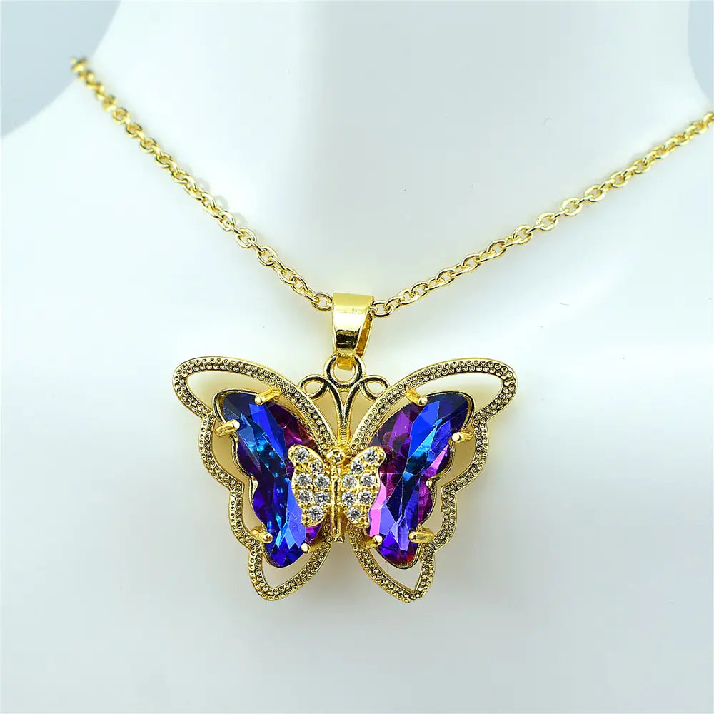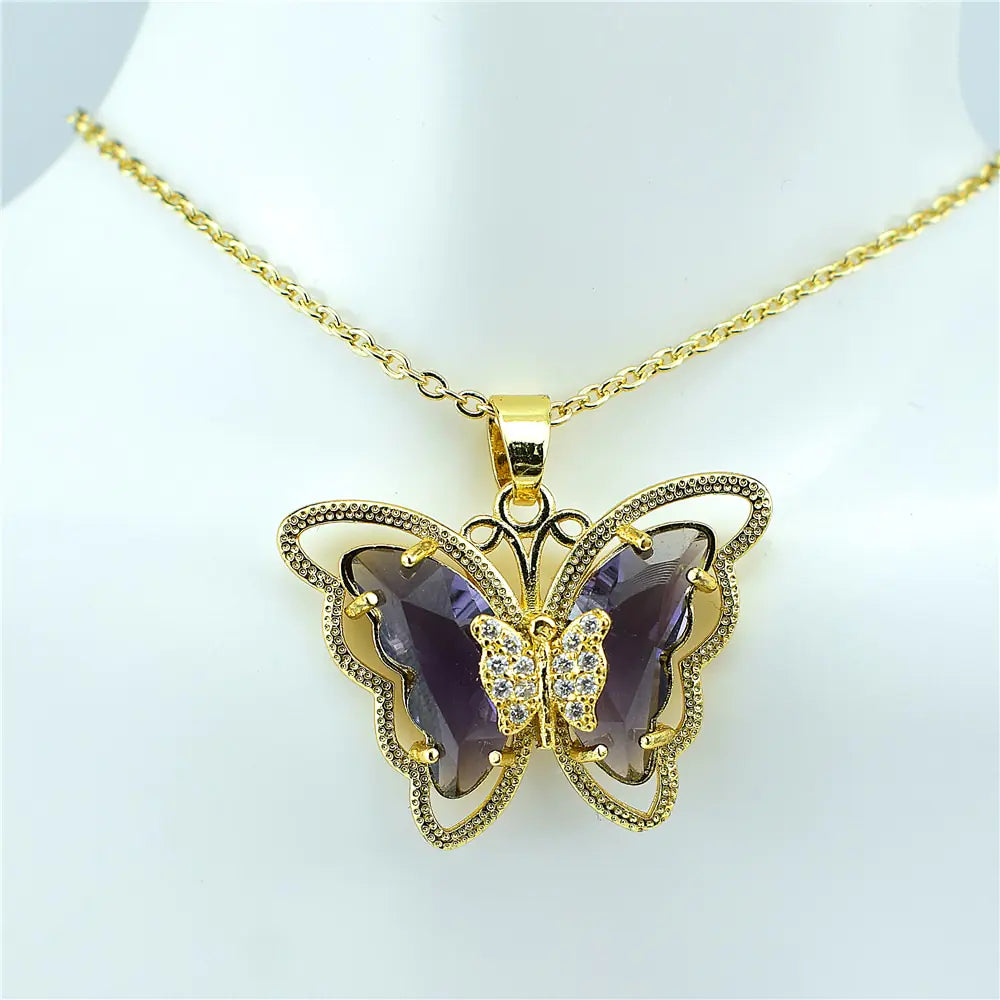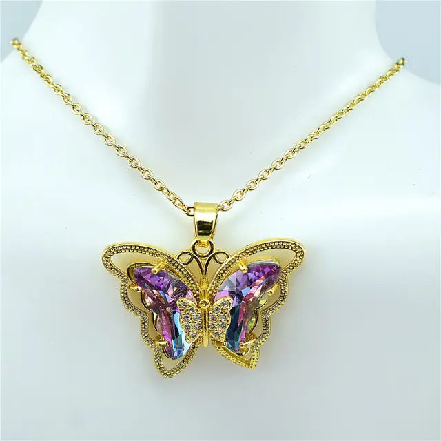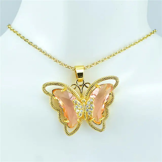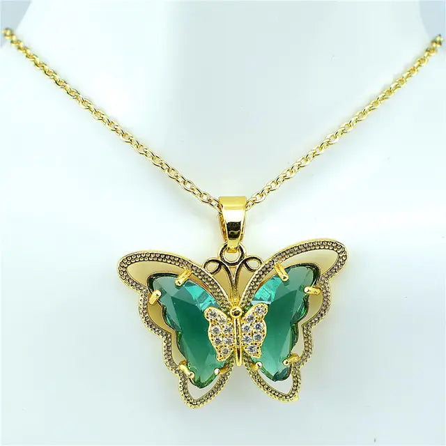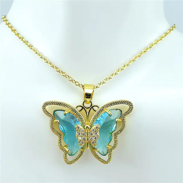 Give your look a delicate and stylish touch with our Crystal Glass Butterfly Necklace. Handcrafted from crystal glass, this necklace features a unique butterfly pendant with sparkling details that will elevate any outfit. The graceful curves of the O-word chain form an elegant silhouette that can be worn day or night. Easily dress up a casual look or give office attire an added touch of glamour. Whether you want to make a statement in a special occasion or add something special to an everyday look, this necklace comfortably pairs with everything. Get ready for compliments wherever you go! Our Crystal Glass Butterfly Necklace is sure to be the timeless accessory your wardrobe needs.