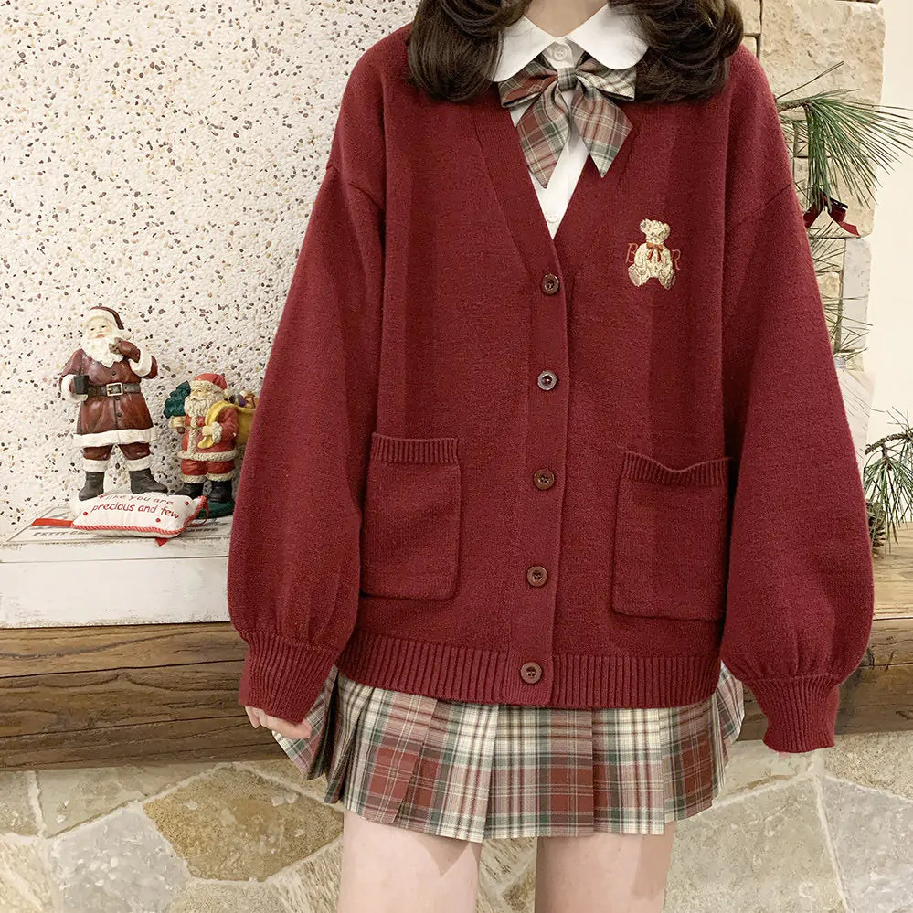 Introducing our new Cute Bear Embroidery Cardigan! This stylish and cozy cardigan is perfect for the chilly days ahead. It features a charming bear embroidery design on the front, and is made from a soft and comfortable fabric. The loose fit allows you to easily layer it over your favorite outfits, and the V-neck provides a flattering silhouette. Whether you're headed to the office or out for a casual weekend brunch, this cardigan will keep you feeling warm and looking chic.