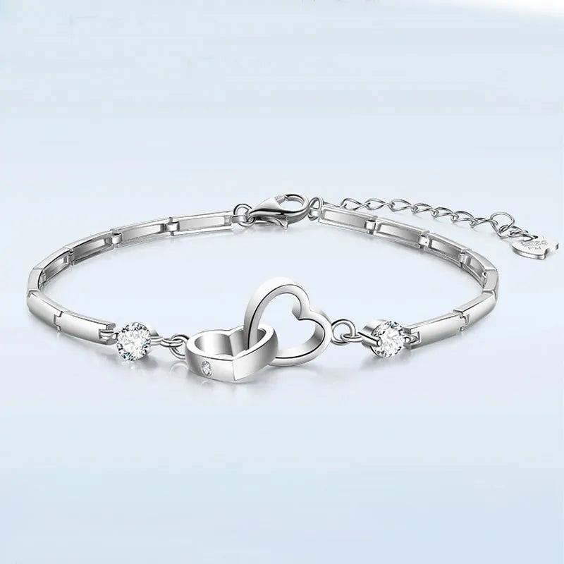 This beautiful Double Heart Bracelet is the perfect way to show your loved one how much you care. Made from Sterling Silver, this bracelet features two hearts intertwined with each other, symbolizing the strength of your love. Cubic Zirconia stones add a touch of sparkle and glamour, making this bracelet the perfect gift for that special someone in your life.