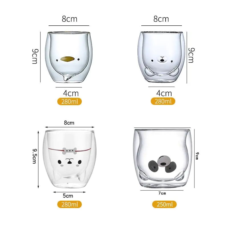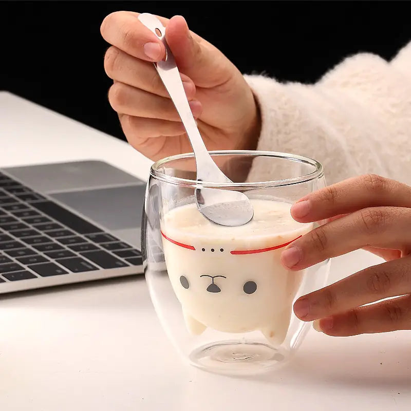 Enhance your morning coffee and tea experience with the Double-Layer Glass Mug, featuring a cute bear, cat, or dog design. These mugs are designed with two layers of borosilicate glass to keep beverages at their desired temperature for longer periods. The double-layer construction also provides visual stimulation so you can enjoy every sip with all of your senses! With its special heat resistance property, ranging from -20°C to 120°C, you can even safely pour steaming hot liquids while still enjoying a comfortable grip. Add a unique touch to your household and share the warm accompaniment of amazing memories and conversations unforgettable moments shared with the Double-Layer Glass Mug! To ensure the safe use of this product, please note that it is not suitable for microwave ovens, dishwashers, ovens, and freezers. Additionally, due to differences in monitors, please understand that color discrepancies may occur.