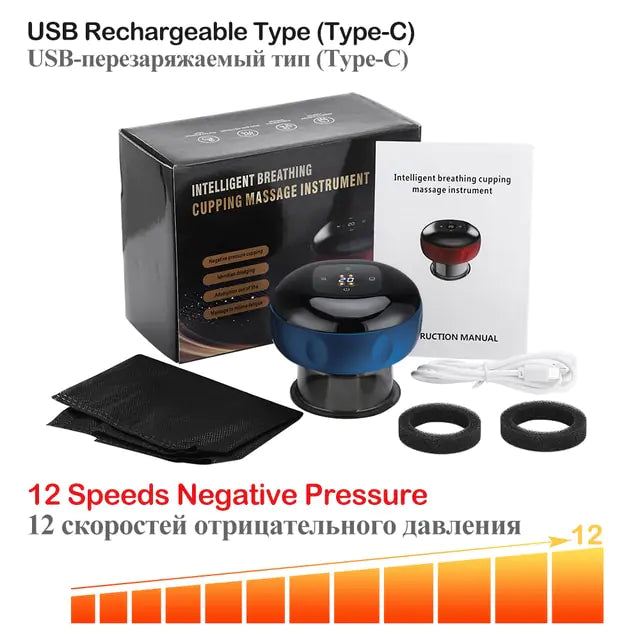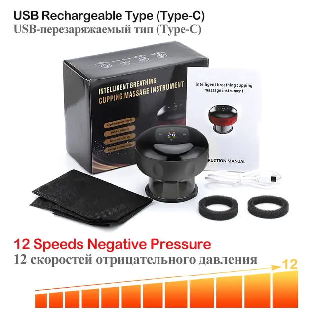 Electric vacuum cupping massage is a therapeutic technique that combines the principles of traditional cupping therapy with the use of electric suction devices. Cupping therapy has been practiced for centuries in various cultures and involves placing cups on the skin to create a vacuum effect. In the case of electric vacuum cupping massage, the cups are equipped with electric suction devices that create a suction force when applied to the skin. This suction force helps to lift and separate the underlying tissues, increasing blood flow and promoting healing.
