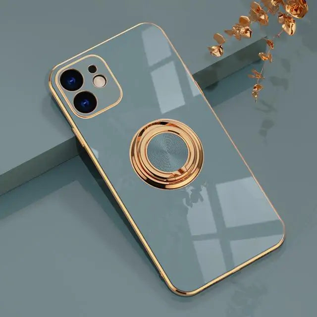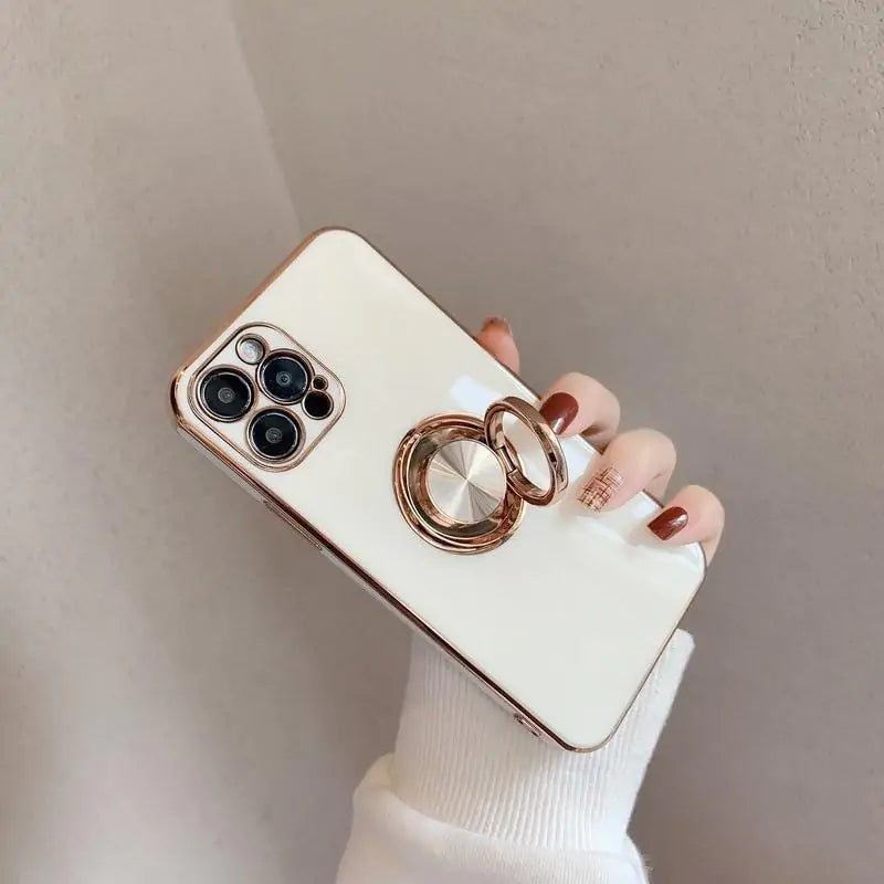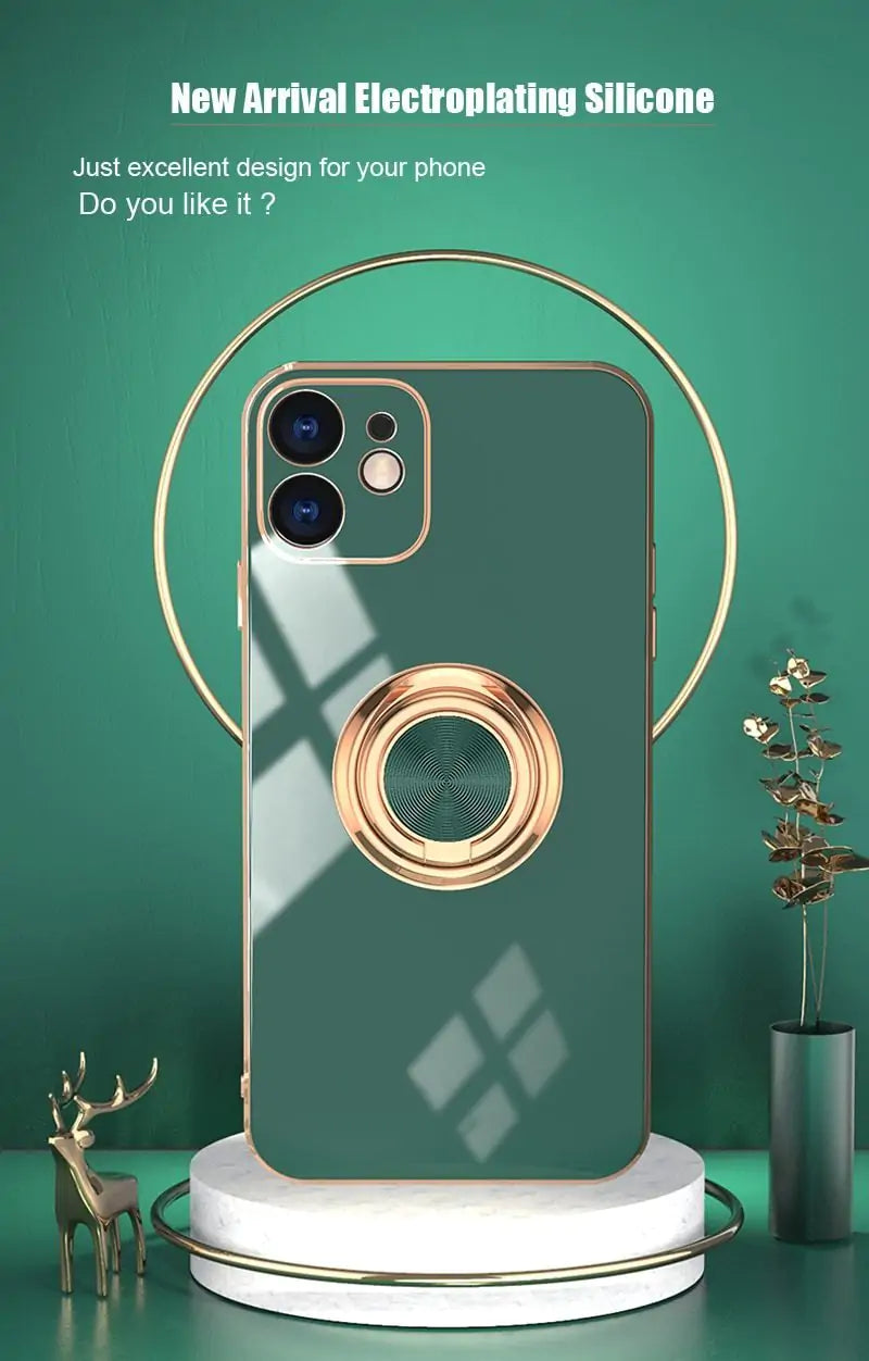 Looking for a phone case that is chic, stylish, and expresses your personality? Look no further than Jelly Cases and their Electroplated Solid Case + Ring Holder. This phone case is made with premium quality materials and comes in a sleek black color with rounded corners. The electroplating process ensures that the case is durable and will resist wear and tear. The ring holder is a fun and practical addition that allows you to keep your phone securely in your hand while you're on the go. Whether you're taking calls, texting, or snapping photos, this phone case has you covered.