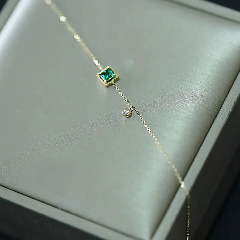 Introducing the Emerald Crystal Chain Bracelet, a stunning piece of jewelry that is perfect for any occasion. This bracelet features a beautiful array of emerald crystals, each hand-selected for their unique color and brilliance. The crystals are set in a 14k gold plated setting, ensuring that they will retain their beauty for years to come. The bracelet is also adjustable, so you can find the perfect fit for your wrist. Whether you're looking for a special gift for a loved one or a way to treat yourself, the Emerald Crystal Chain Bracelet is the perfect choice.