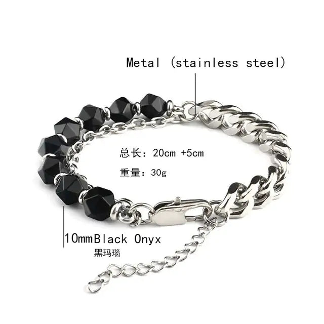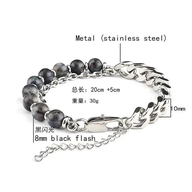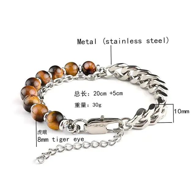 Introducing our European Natural Tiger Eye Bracelet, a fashion-forward and creative take on the classic bracelet. This bracelet features a unique design with natural tiger eye stone beads and stainless steel metal Cuba chain. The perfect accessory for any outfit, this bracelet makes a great statement piece. With its simple yet stylish design, this bracelet is perfect for any man who wants to add a touch of luxury to his look.