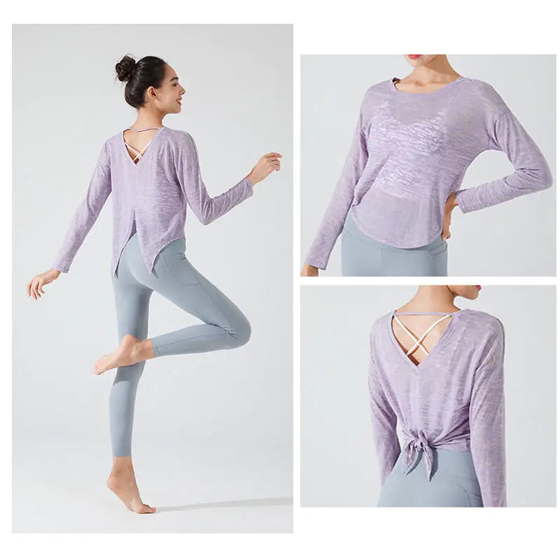 Elevate your athletic wardrobe with our Fitness Loose Sportswear Blouse – the ultimate fusion of style and functionality. Crafted to complement your active lifestyle, this sportswear blouse provides the perfect blend of comfort and versatility. Whether you're hitting the gym, practicing yoga, or going for a run, its loose-fitting design offers unrestricted movement and breathability, ensuring peak performance. Featuring a stylish V-cut back for an elegant neckline and a butterfly-shaped back waist for added flair, this blouse combines fashion with function. The extended hem provides extra coverage during your workouts, while flat seams guarantee a comfortable fit inside and out. Made from a blend of cotton and polyester, it offers a subtle see-through effect, adding a touch of allure to your fitness routine. Available in various sizes, discover the perfect fit and elevate both your athletic performance and style with our Fitness Loose Sportswear Blouse.