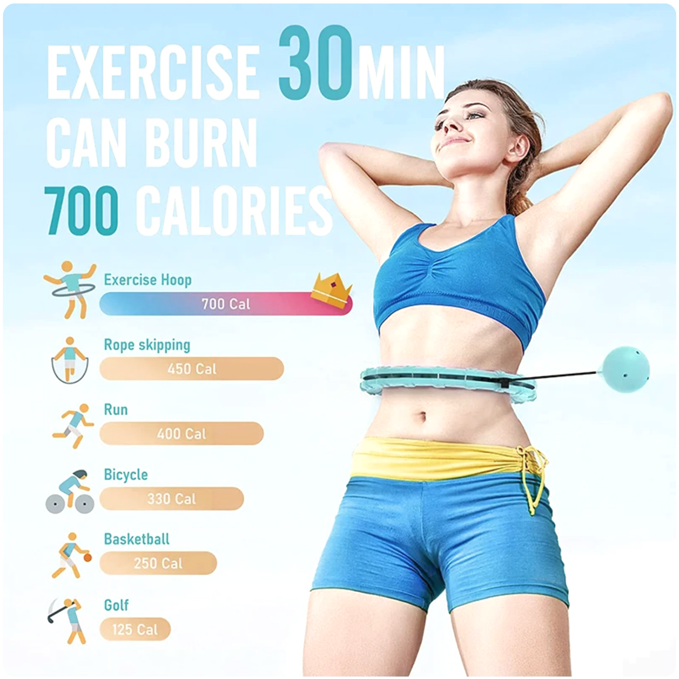 Calorie-Burning Powerhouse: Compare the calorie burn of FitFlex Hoops to other sports – 30 minutes with FitFlex Hoops can torch an impressive 700 calories, outshining alternatives like rope skipping (450 calories), running (400 calories), bicycling (330 calories), basketball (250 calories), and even golf (125 calories). Unleash the ultimate calorie-burning potential.