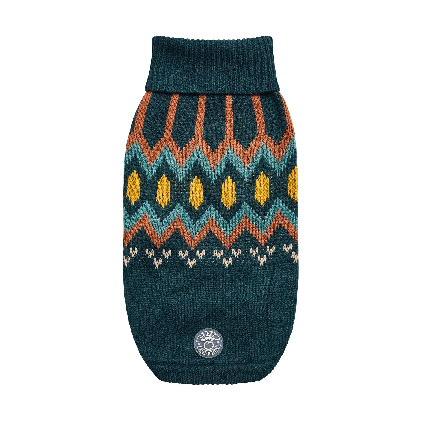 The GF PET Heritage Sweater is fun and unique, with its’ native-inspired vintage design and warm color combos. This quality multi-knit turtleneck boasts a comfortable, sculpted unisex fit, secure ribbed arm holes and an authentic GF PET Logo Patch. A must-have style that all generations of dogs and owners will love!!