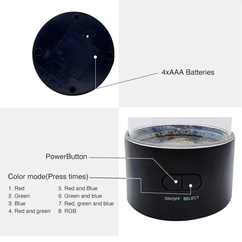 2. Insert 4AAA batteries(not included) and lock the battery cover(Remove battery infusing USB cable)Or connect the power with USB cable to a USB interface