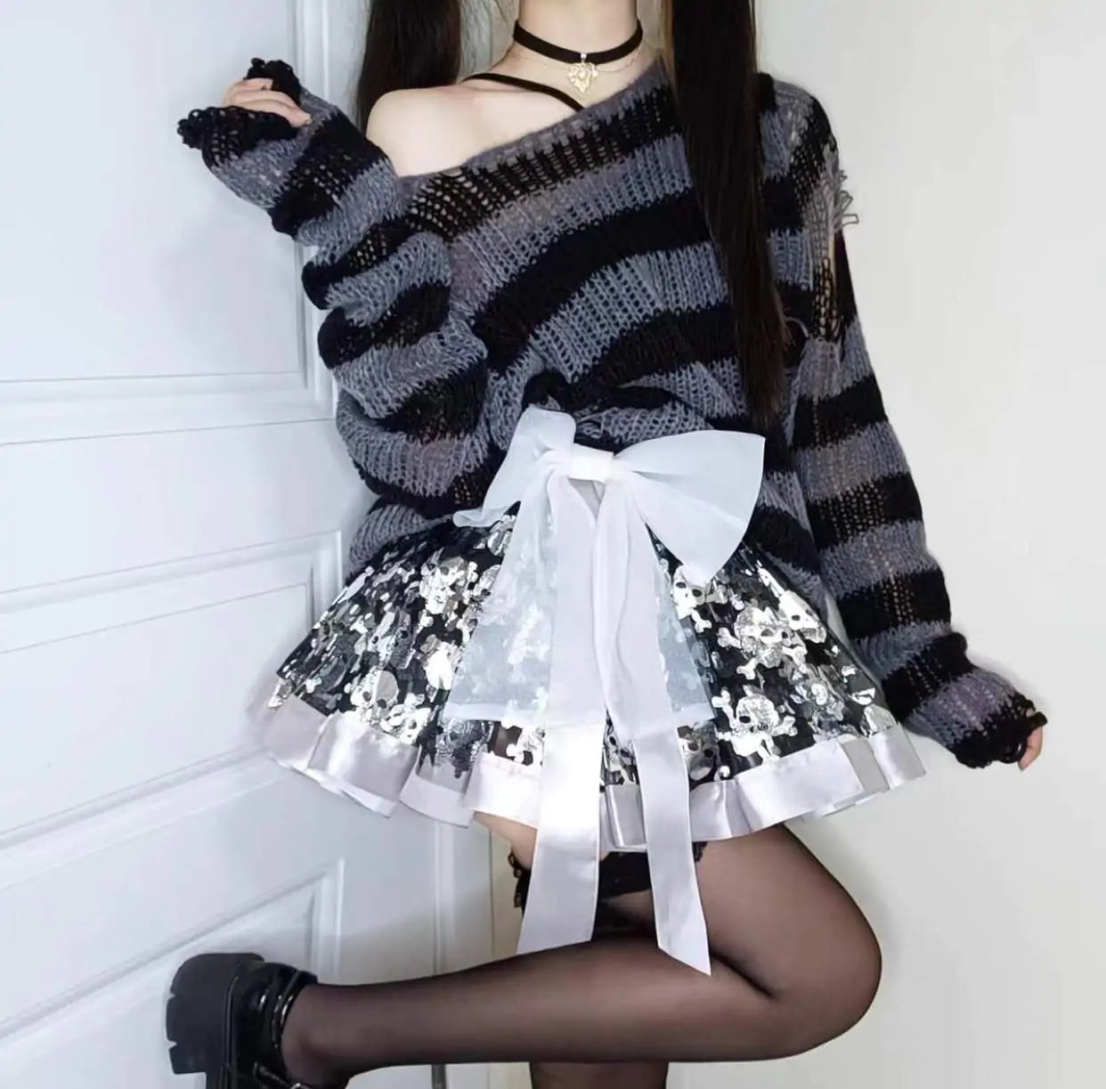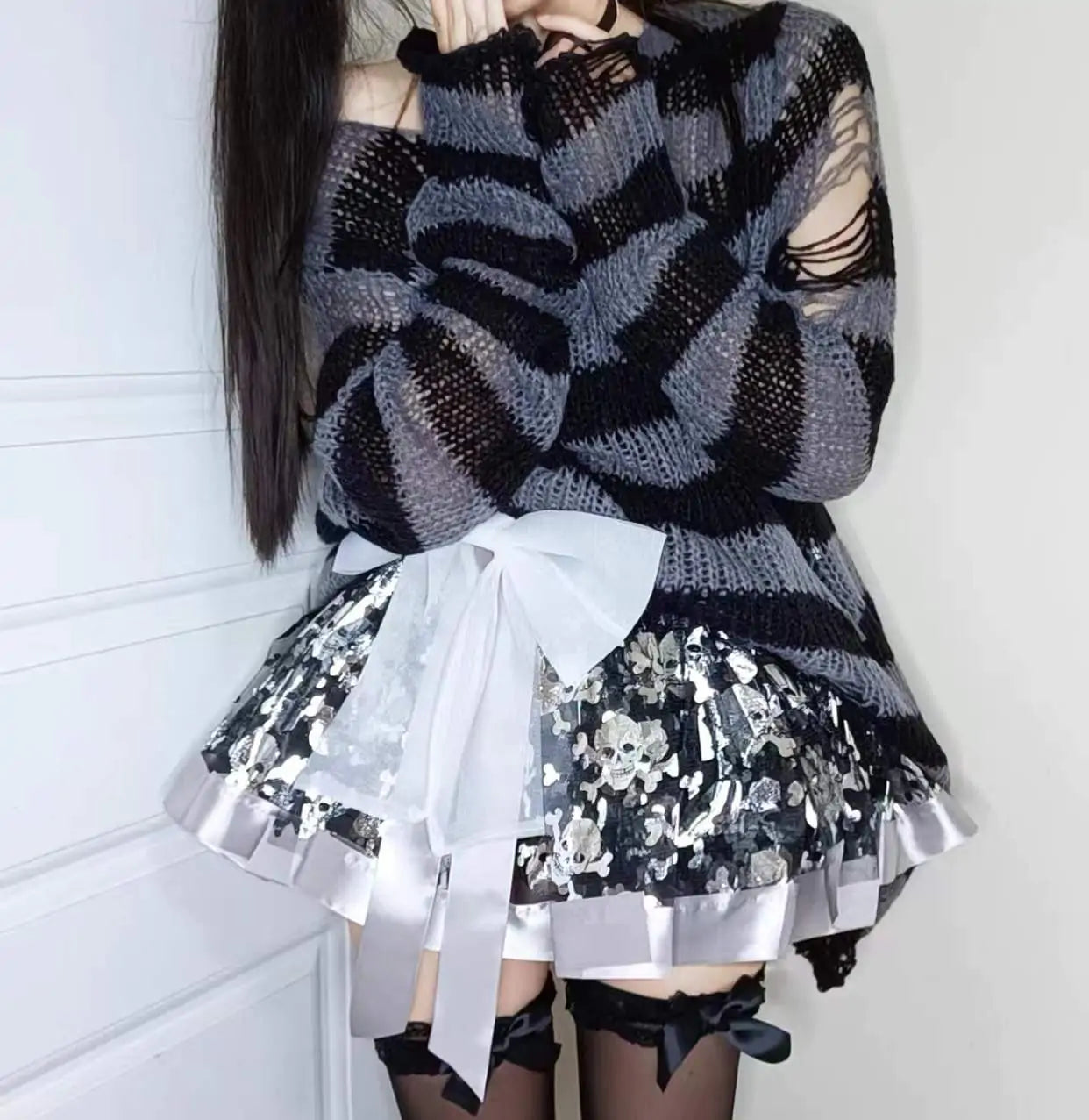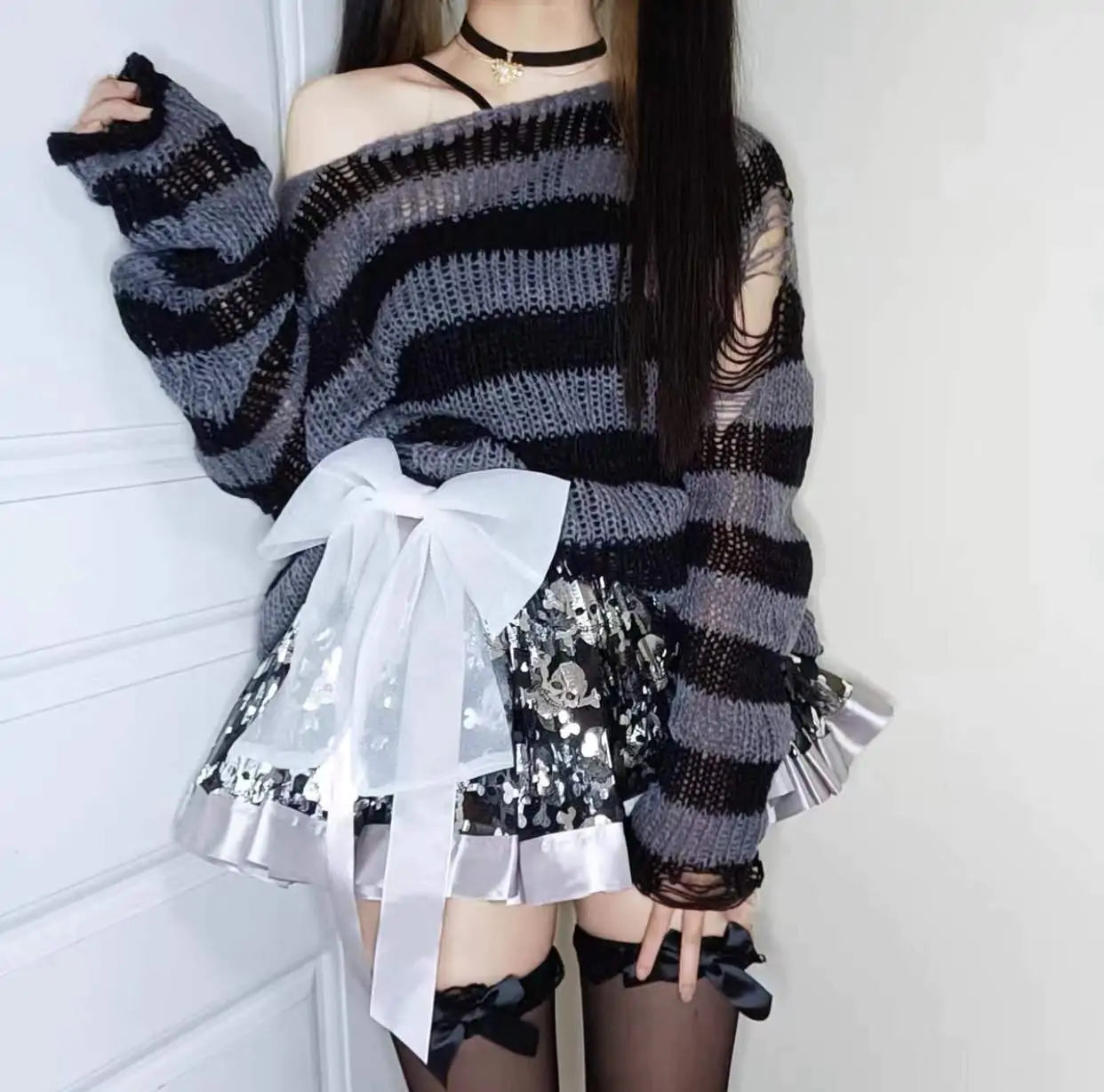 Looking for something different in a sweater? Check out our Karrcat Gothic Sweater. This unique piece is perfect for making a statement, whether you're going for a punk look or just want to stand out from the crowd. The black and white stripes are accented by hollow-out detailing, giving it an edgy vibe that's sure to turn heads. The loose fit is comfortable and flattering, making it a great choice for any body type. And the best part? It's made from 100% wool, so it's sure to keep you warm all winter long. So don't miss out on this must-have sweater. Add it to your wardrobe today!