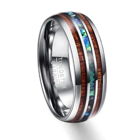 - Genuine solid tungsten carbide and wood/abalone shell Inlay