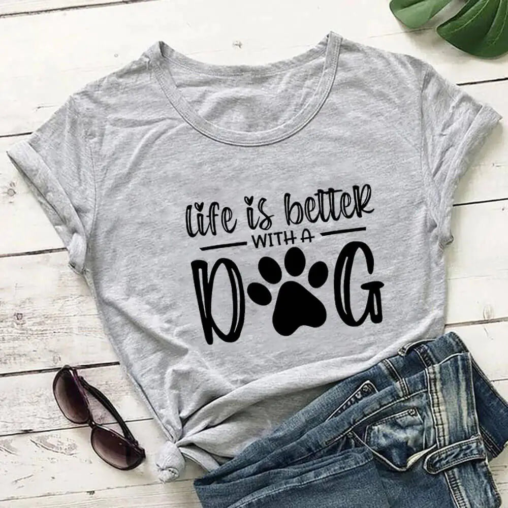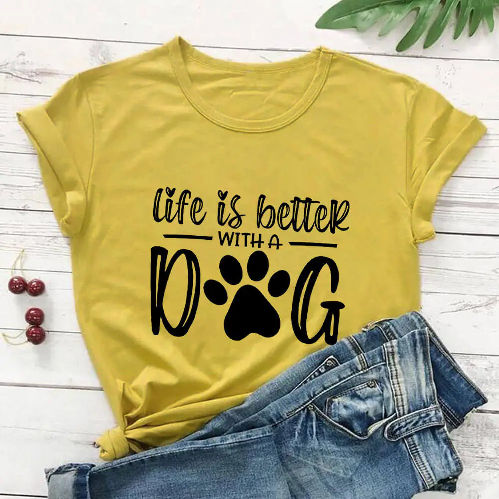 Show your love for canine companions with the "Life Is Better With A Dog" Shirt. Featuring a bold and fun cartoon design, this casual, fashion-forward shirt is designed with your comfort and style in mind. The durable cotton fabric is lightweight and suitable for warmer months, while the slight stretch allows for maximum comfort and movement. The classic O-neck collar and regular clothing length provide an effortlessly flattering silhouette that can be dressed up or down however you'd like. Show off your inner pup lover with this chic yet playful top. From lazy days spent out on a summer walk to those special celebratory occasions, there’s no wrong occasion to wear this stylish shirt. Dress it up with simple accessories and make a statement wherever you go!