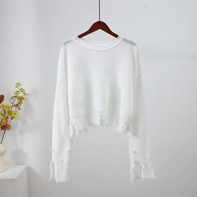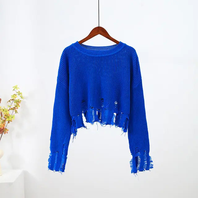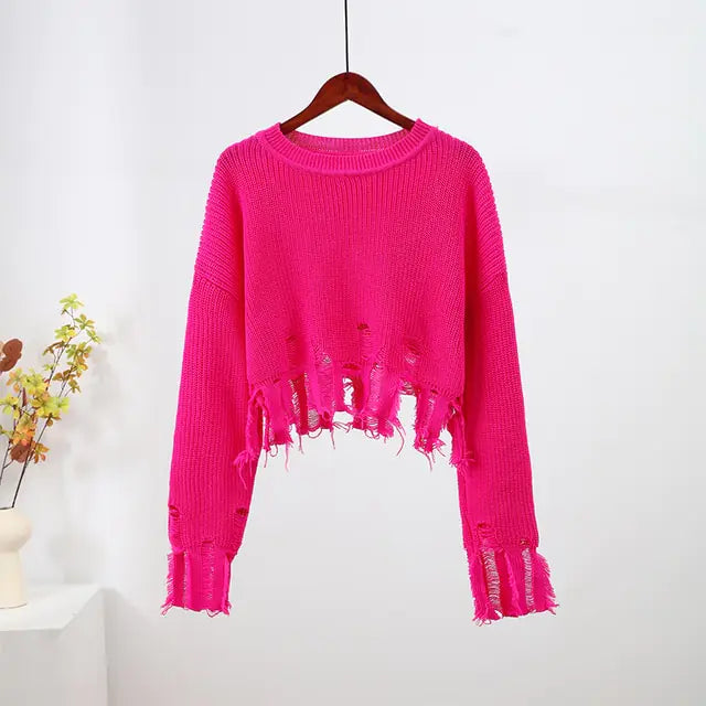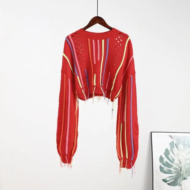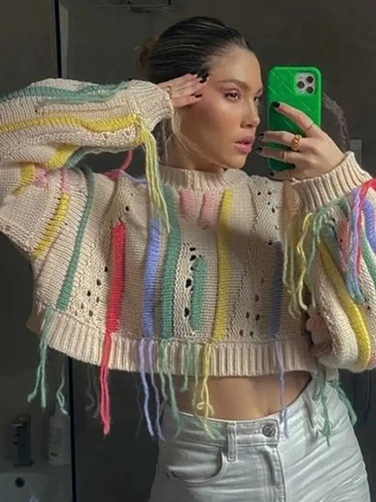Introducing our Long Sleeve Ladies Pullover Top – the perfect wardrobe piece for the modern woman. This chic fringed women's casual sweater is designed to keep you looking your best with a tassel detail that adds effortless style to your everyday look. Crafted from the finest material, this cropped sweater features an elegant hollow out pattern for a stylish and timeless look. You’ll enjoy the comfortable spring and autumn feel of this pullover top, and its bold design is guaranteed to turn heads wherever you go. Get your next go-to piece from our Long Sleeve Ladies Pullover Top!