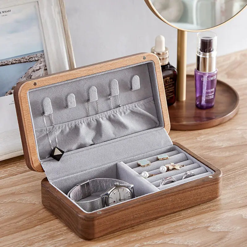 Crafted for jewelry aficionados and style mavens alike, this wooden organizer is more than just a storage case β it's your personal treasure trove for keeping your prized possessions safe and beautifully displayed! With its exquisite wood grain and thoughtful design, it offers ample space for your necklaces, earrings, watches, and rings, keeping them organized and easily accessible. Whether you're showcasing your favorite pieces or searching for the perfect gift, our jewelry box adds a touch of sophistication to any dresser or vanity. Get ready to elevate your accessory game with the Amgoth Luxury Wood Jewelry Box β because your treasures deserve to be housed in style! πΌπ #LuxuryStorage #TimelessElegance