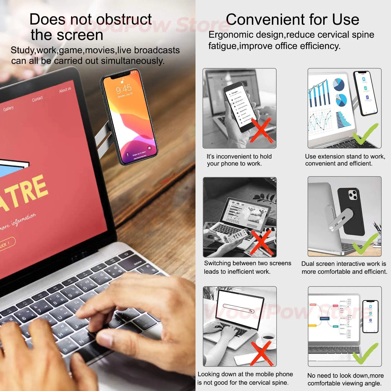 Are you tired of juggling your phone or laptop while you work and worry about it falling off the desk? The Magnetic Expansion Phone Holder is made for you! This adjustable laptop bracket allows you to effortlessly attach and reattach your phone or laptop with ease. Simply clip this holder onto the side mount of your device, then adjust the height and angle using the built-in magnetic expansion technology for secure installation in seconds. With this nifty piece of tech, you can keep your computer firmly in place no matter how active the surface might be. Convenient form-fitting design ensures perfect compatibility for most flat-panel laptops without obstructing airflow needed to keep space cool. It offers an extra space saving option with its retractable arm which stows away neatly when not in use. And if that was not enough, this bracket comes loaded with a array of other features such as 360 degree rotation, durable construction and non-skid rubber feet which are designed to keep any surface free from scratches. No more worries - take back control today with our Magnetic Expansion Phone Holder!