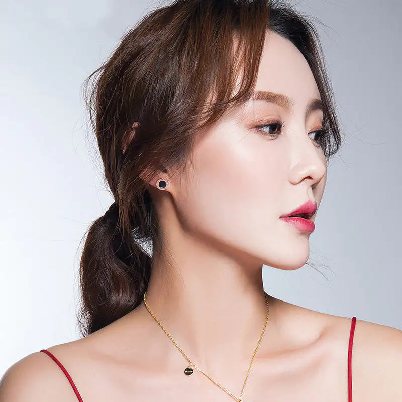 Designed for the fashion-forward individual, these studs effortlessly blend into any ensemble, making them the perfect accessory for every occasion. The dark hue of the stones adds a touch of elegance without overpowering your look, ensuring you stand out with subtle charm.