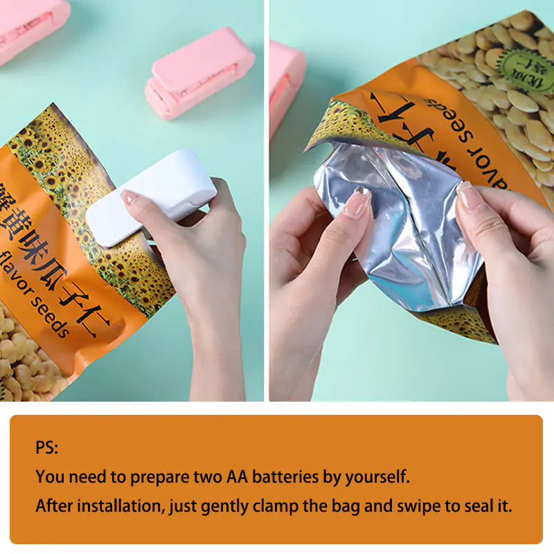 Looking for a quick and easy way to seal up your snack bags? Look no further than the Mini Sealing Machine! This handy little gadget is perfect for on-the-go sealing, and it's small enough to fit in your purse or pocket. The Mini Sealing Machine uses batteries to seal up your bags in seconds, and it even has a magnetic suction design on the back so you can keep it handy on your fridge or other metal surfaces. With its bright colors and cute design, the Mini Sealing Machine is sure to be a hit with everyone in the family!