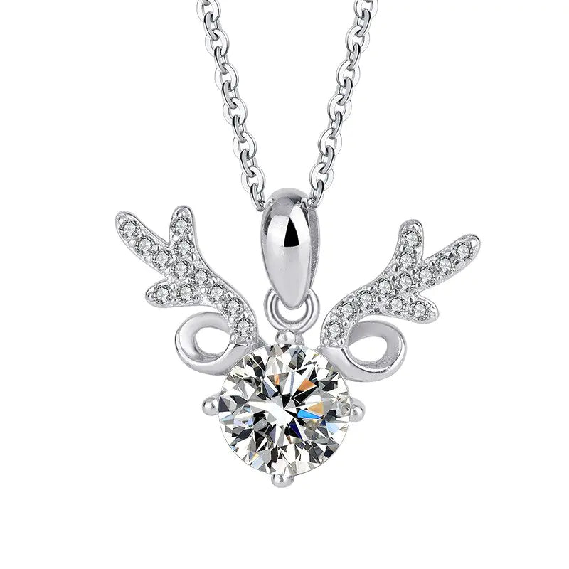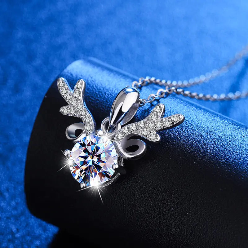 A perfect choice for the special woman in your life, this Moissanite diamond necklace is a stunning piece of jewelry. The necklace features a 6.5mm Moissanite diamond, which is a real diamond, set in a 925 Sterling Silver setting. The pendant hangs from a beautiful 18-inch chain and is the perfect length for any neckline. The Moissanite diamond is cut in a deer horn shape, making it unique and eye-catching. This necklace makes a great gift for any occasion, such as an anniversary, birthday, or holiday. Show her how much you care with this exquisite piece of jewelry.