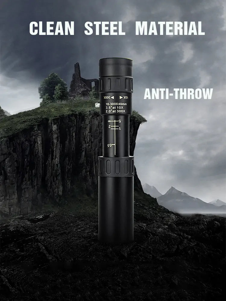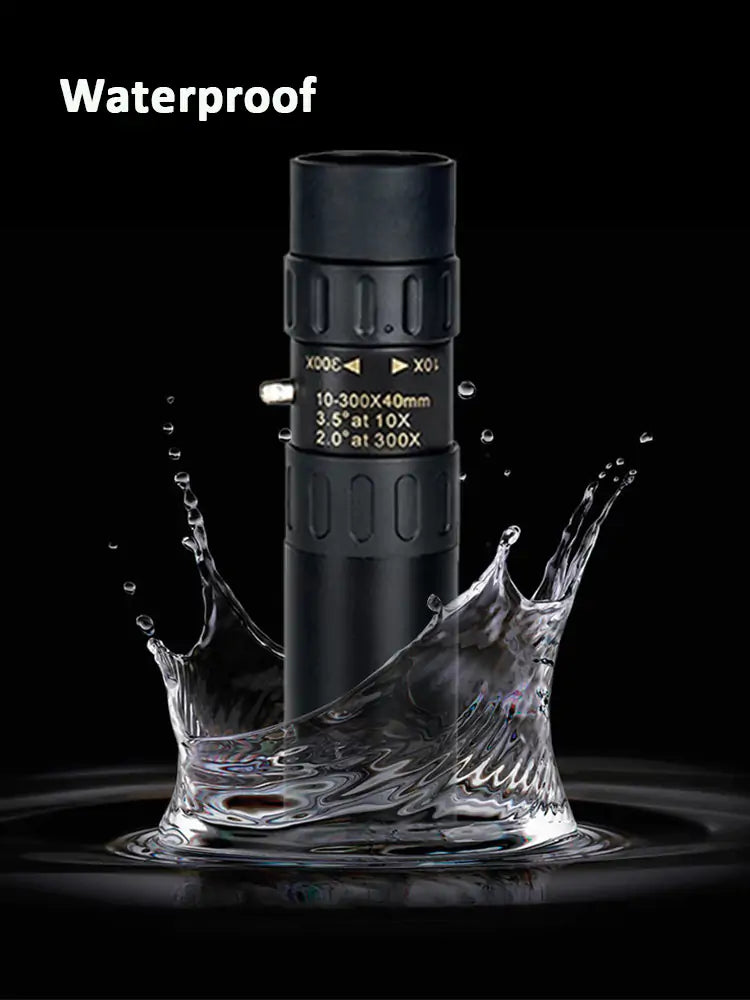 Introducing the Monocular Telescope! This powerful telescope is perfect for anyone who loves spending time outdoors, whether you're an avid birdwatcher or enjoy hiking and exploring new sights. The high magnification of 10-300x lets you see things in great detail, while the crystal clear view provided by the high-definition optics and BaK-4 prisms with multi-layer coating ensures that you'll enjoy a vivid and meaningful experience. The daily waterproof function means you can use it in all kinds of weather, and it even supports smartphone photography and videography. So don't miss a moment of your outdoor adventures – pick up a Monocular Telescope today!