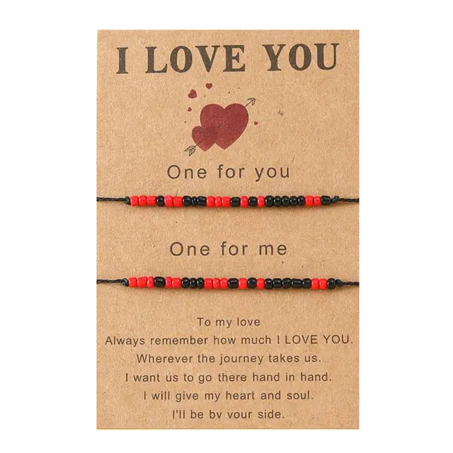 Introducing our Morse Code Charm Bracelets, a meaningful and heartfelt way to express love and friendship. This unique bracelet features beads that spell out "I Love You" in Morse code, creating a secret message that holds sentimental value. Designed for both women and men, our Couple Bracelet set comes with an adjustable handmade braided band, ensuring a comfortable fit for all wrist sizes. The bracelets are thoughtfully crafted with attention to detail, making them a meaningful gift for your special someone or a dear friend.