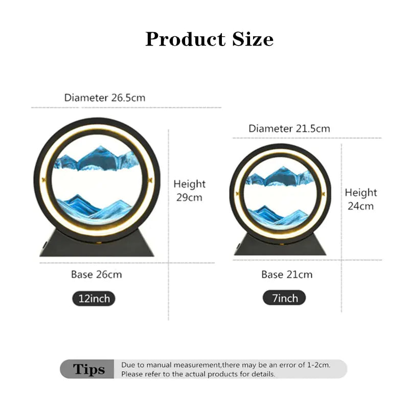 Introducing the Moving Sand Art Landscape Table Lamp, a unique and stylish piece of home decor designed to elevate any setting. Made from lead-free, high-transparency glass, this lamp provides vivid colors with layers of sand that move fluidly scrolling a three-dimensional natural landscape display - perfect for relaxing the eyes and calming the mind. Our USB LED Craft Quicksand is dimmable so you can adjust the brightness of a room for different activities or ambiences. Featuring a unique round design, soft light and an adjustable touch switch with 3 settings (warm light, natural light and cool light), this lamp is perfect for any room in your home. Not only does it create the perfect atmosphere to help you relax but it also acts as a stunning decorative accessory. Place it on your desk or night table; whether used in your bedroom, living room or office, this Moving Sand Art Landscape Table Lamp will complement your space while giving off beautiful soft lighting.