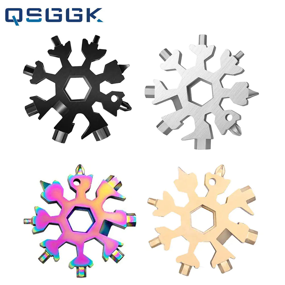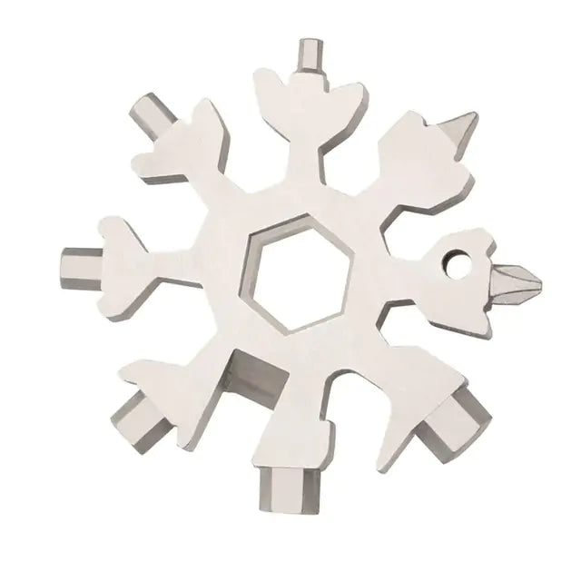 Introducing the 18-in-1 stainless steel multi-tool. This handy tool was originally designed as a snowboard multi-tool, but it can be used for so much more. Use it to open bottles, turn screws, fix skis and bicycles, cut boxes, and more. It's easy to carry and perfect for hiding in pockets, glove boxes, purses, or backpacks. The unique snowflake design makes it the perfect gift for military enthusiasts and outdoor lovers. So don't miss out on this essential EDC tool. Get yours today!