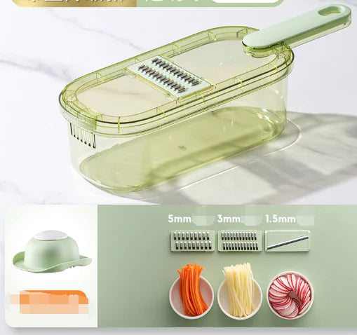 Introducing the Multifunction Vegetable Cutter With Basket And Brush - an indispensable tool for any busy kitchen. This versatile cutter has 3 interchangeable blades to easily slice, dice, shred or grind a variety of vegetables with incredible precision. The bottom container neatly catches all chopped vegetables and conveniently holds the blades for storage. Plus, the added brush make cleaning and maintenance effortless. Constructed from durable food-grade materials, this chopper is designed to last for years to come. Ideal for slicing onions, making salsa, and more - you'll wonder how you ever managed without it! With a sleek design and endless uses in the kitchen, this Multifunction Vegetable Cutter will quickly become your go-to cooking companion.