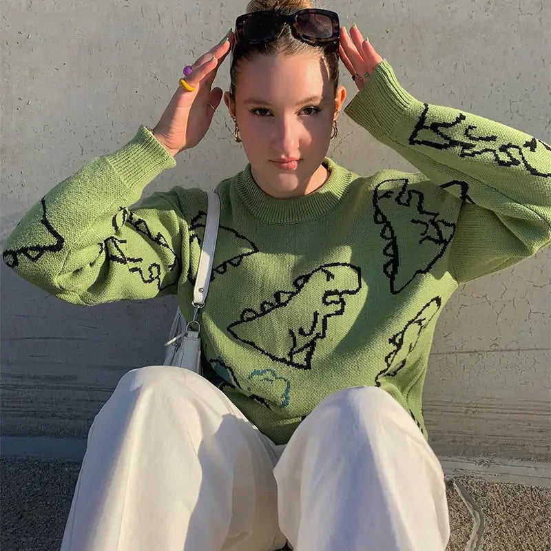 Looking for something different in a sweater? This O-Neck Dinosaur Sweater is sure to get attention with its fun and unique design. TheSweater is made of a comfortable and warm material, perfect for chilly days or evening out. It is also easy to care for, simply machine wash and tumble dry. The fun dinosaur print makes this sweater stand out from the rest, while the loose fit allows you to move and breathe easily. Whether you are looking for a gift for someone special or treating yourself, this sweater is sure to please.