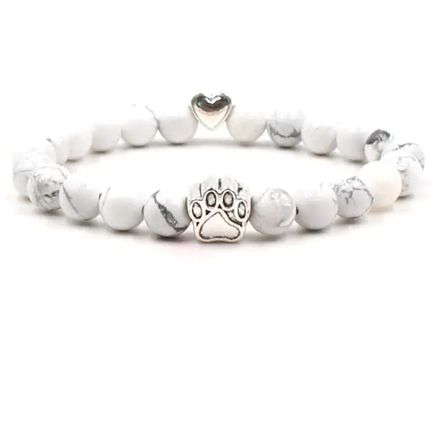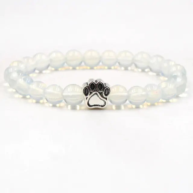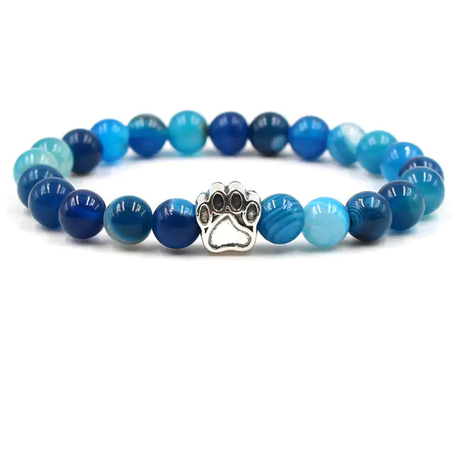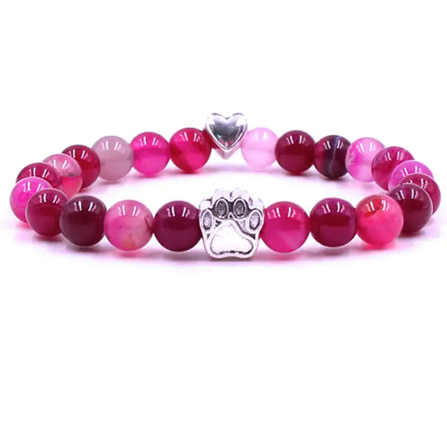 Introducing our new line of pet footprint stone bracelets! These bracelets are made of natural stones, each with their own unique color. The beads are 8mm in size and are strung together with a strong elastic cord. They are the perfect accessory for any pet lover and make a great gift!