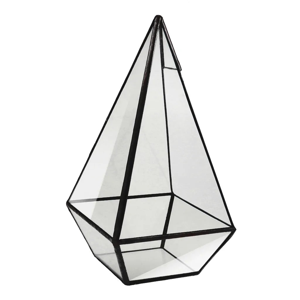 Looking for a stylish way to display your plants or other favorite keepsakes? Check out our Pyramid Glass Terrarium! This modern glass cube is perfect for adding a touch of eye-catching style to any space. With a sturdy metal frame and ultra-clear glass, this contemporary art piece is great for showing off your plants, votive candles, or other favorite items. And because it's the perfect size for ferns, moss, succulents, and other easy-to-maintain plants, our Pyramid Glass Terrarium makes it easy to add a touch of green to any room. So whether you're looking for a new way to show off your plants or just want to add a unique decorative element to your home, the Pyramid.