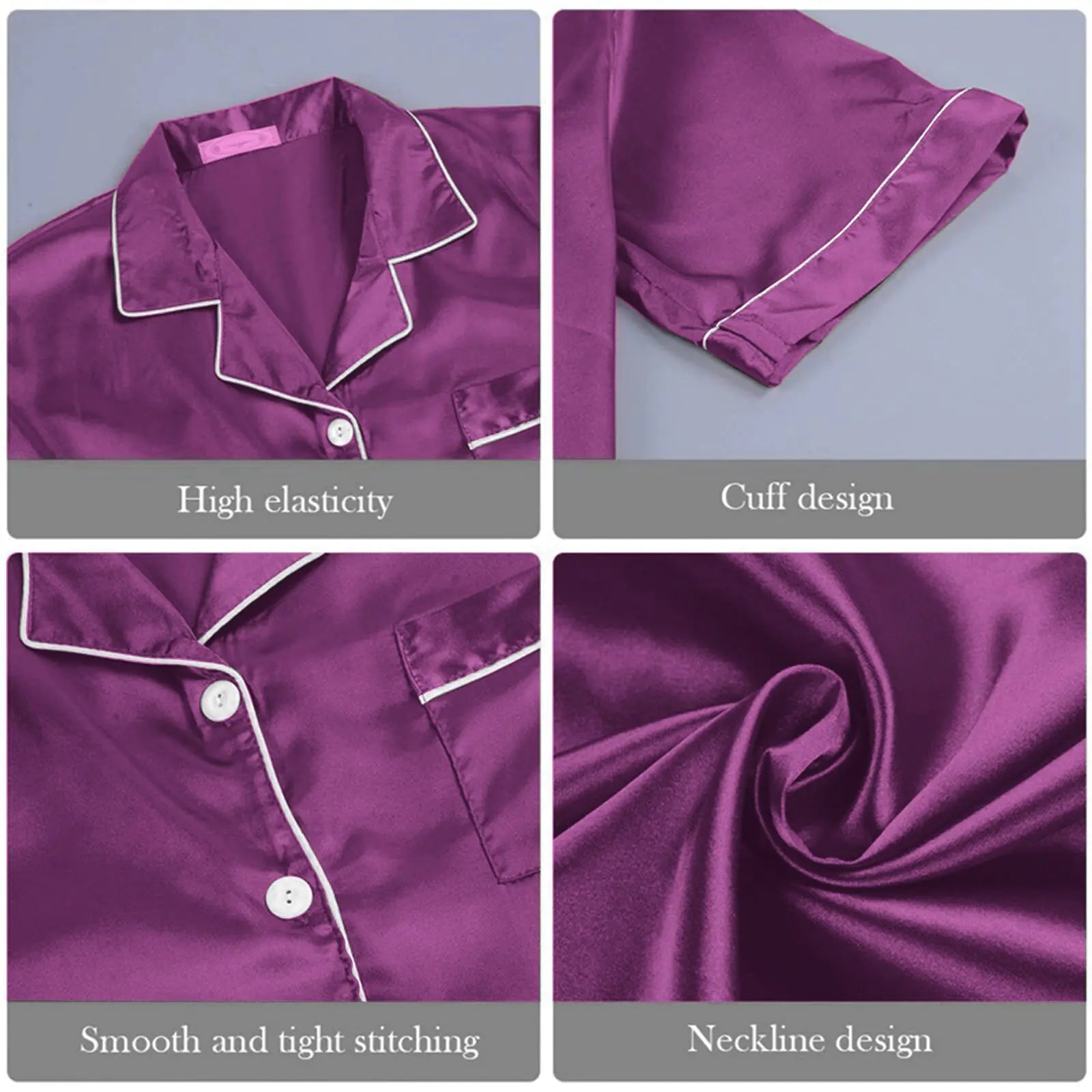 Indulge in ultimate comfort and luxury with our Silk Pajamas for Women. This elegant Home Suit combines a short-sleeve shirt with matching shorts, creating a delightful Pajamas Set that exudes sophistication and style. Crafted from premium satin, these Nightwear pieces offer a silky smooth touch against your skin, ensuring a restful and peaceful night's sleep. Embrace the feeling of pure bliss as you slip into this lightweight and breathable Nightgown, perfect for warm summer nights.