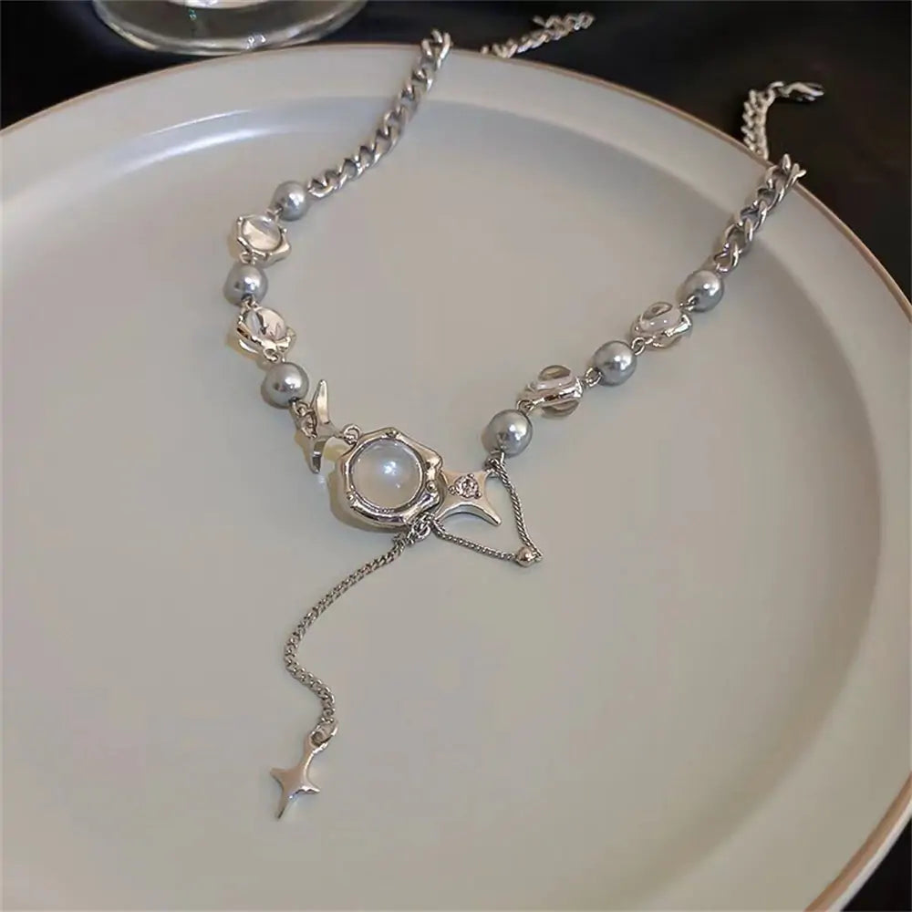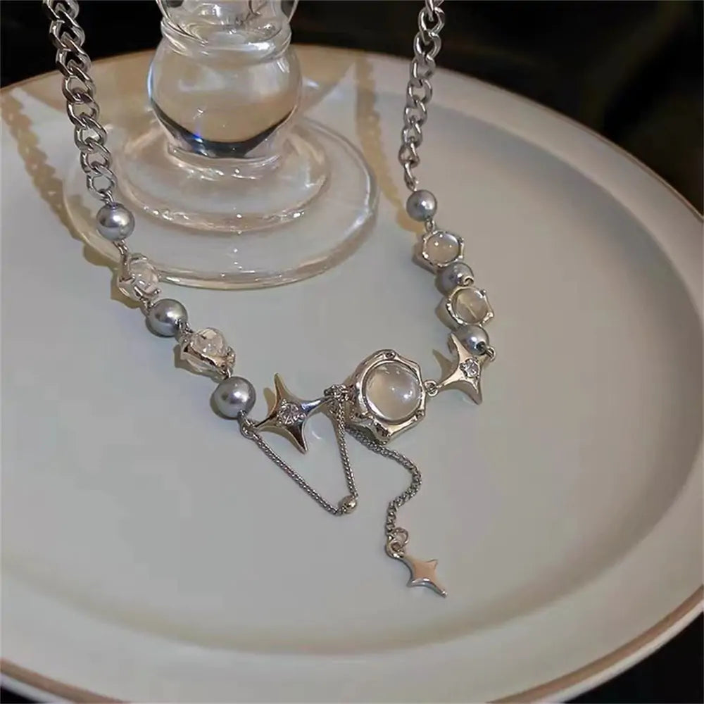 Charm your way through any day or night with our exquisite Star Geometric Crystal Chain Necklace. A timeless classic with a modern twist, this choker necklace is crafted with stainless steel and features a beautiful crystal pendant in a star geometric design. The perfect accessory for any outfit, this sparkling necklace is sure to turn heads and add some serious glamour to your look. Whether you're dressing up for a special occasion or just accenting your everyday style, this fashionable necklace is a must-have addition to your jewelry collection.