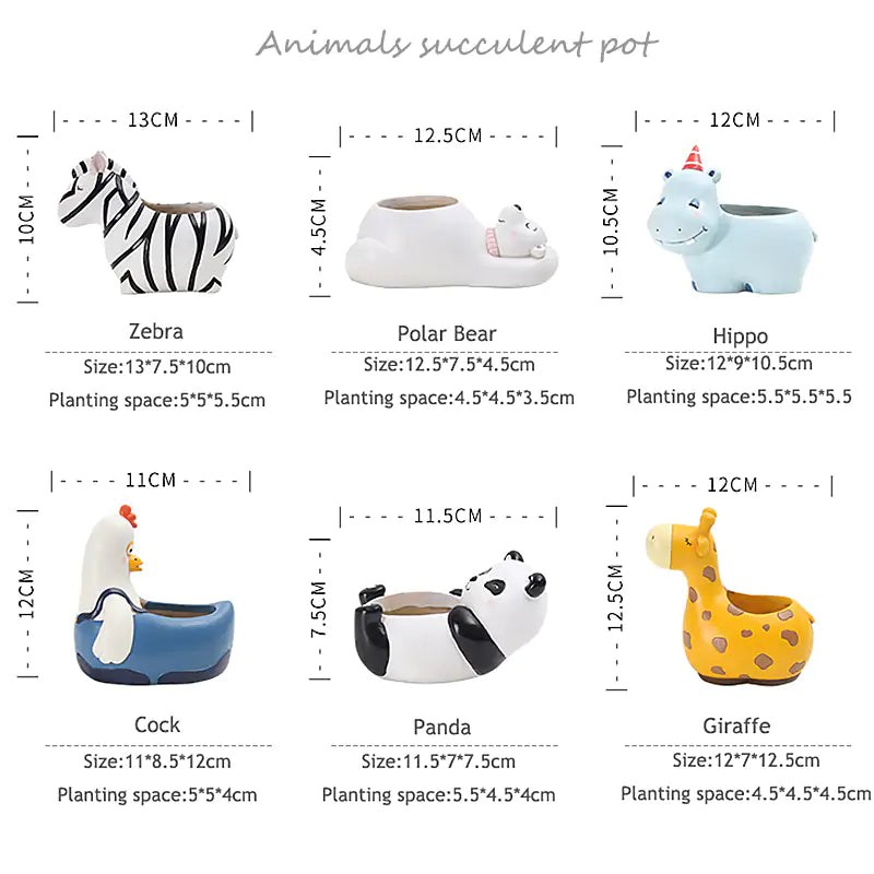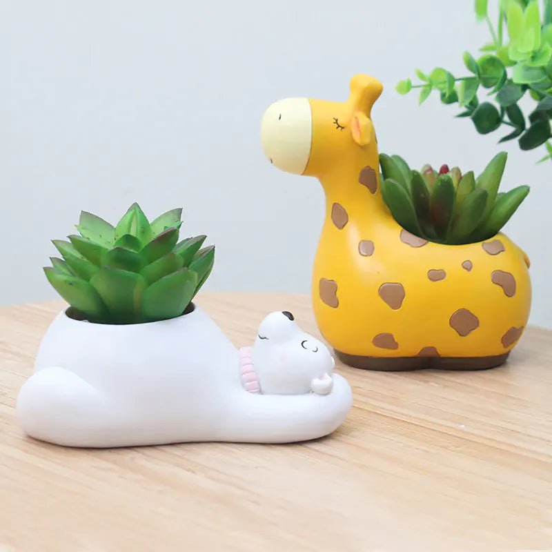 Add some life to your home or office with this adorable succulent planter! Perfect for those who want to add a splash of greenery to their space, this little planter is sure to brighten up any room. Made of resin, it's lightweight and easy to move around, so you can place it anywhere you like. And the best part? It comes in an adorable animal shape, so you can choose between a cute bear, zebra, or giraffe. So why not add one of these darling succulent planters to your space today?