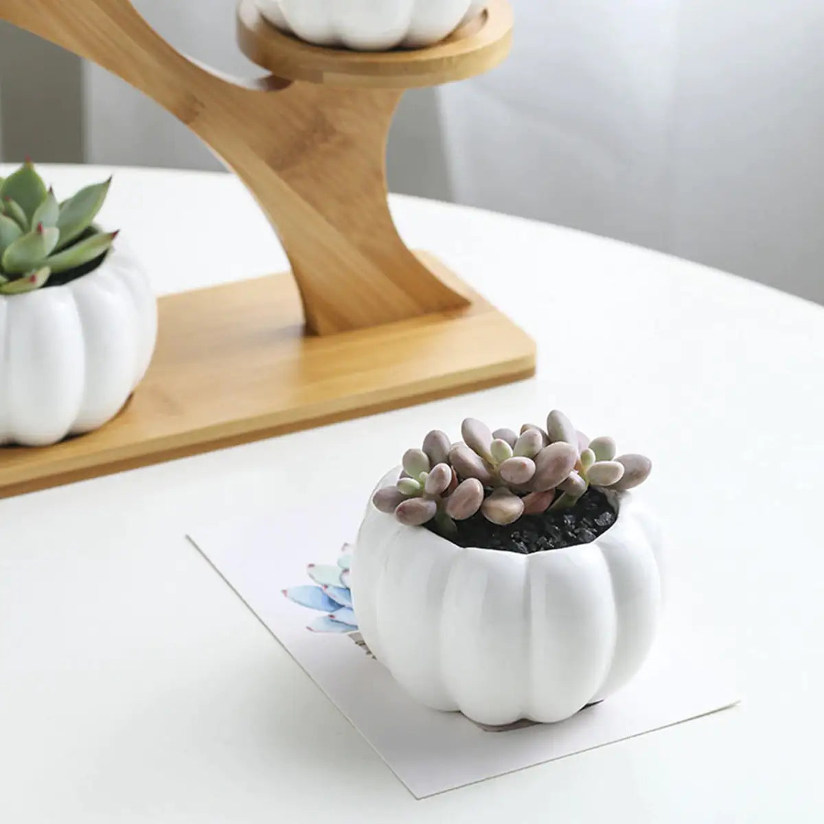 Bring life and style to your home or office with Succulent Plant Ceramic Pots & Bamboo Shelf. Our ceramic pots are crafted to perfection with high-quality materials and intricate, unique designs that will make a lasting impression. With a variety of sizes specially designed to accommodate all succulent species, you can be sure your plants will thrive beautifully. And with the addition of our bamboo shelf, you’ll have the perfect platform to display them on in style. This piece is sustainably made for long-term use and provides natural warmth to any room in your home or office. Upgrade any space today with our Succulent Plant Ceramic Pots & Bamboo Shelf!