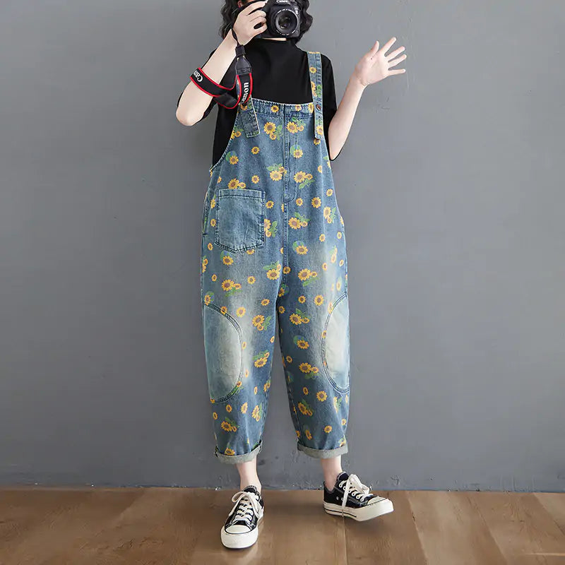 Looking for something fun and flirty for spring? Check out our sunflower printed overalls! They're perfect for a day spent picnicking in the park or running errands around town. The light wash denim is accented with beautiful sunflower embroidery, and the straps are adjustable so you can get the perfect fit. The long pants have pockets, so you can keep your essentials close at hand. Whether you dress them up with a blouse and heels or keep it casual with a tank top and sneakers, our sunflower overalls are sure to become your new favorite warm weather look.