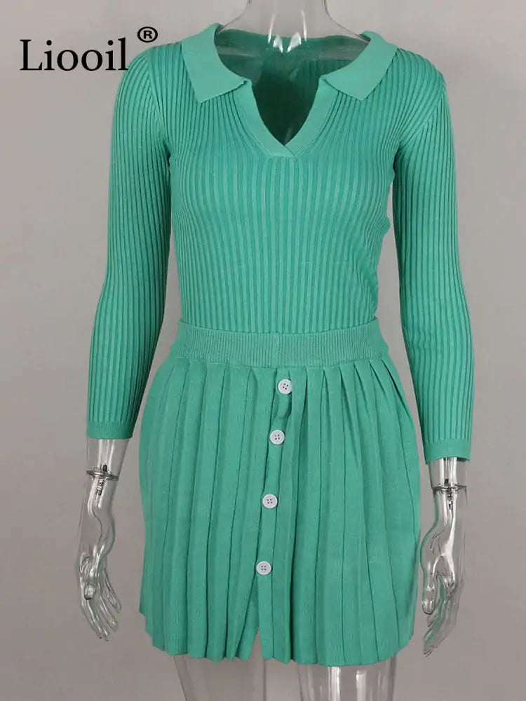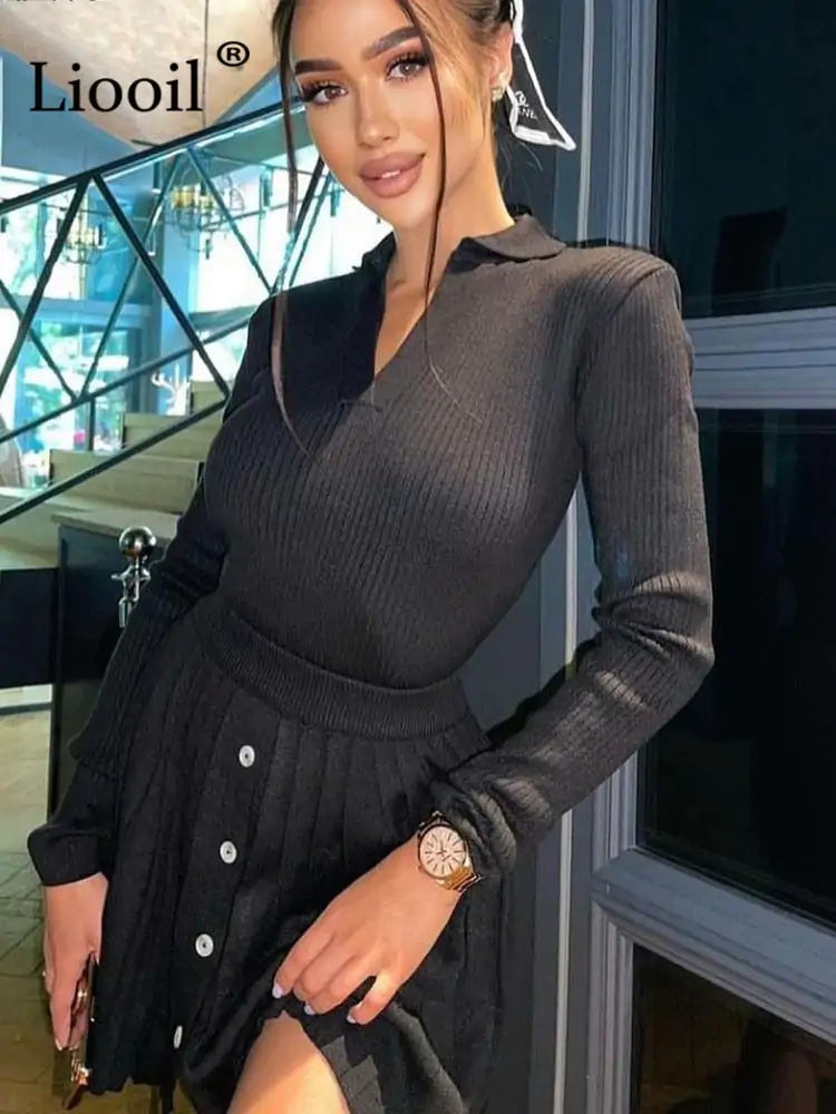 Introducing our Sweater Outfit Set – the perfect two-piece set for a stylish, put-together look this season. This set includes a cropped sweater with long sleeves and a V-neckline, and a pleated mini skirt. The sweater is made from a soft knitted fabric, and the skirt is crafted from a lightweight material with a hint of stretch for comfort. The skirt has an A-line silhouette and falls to mid-thigh, creating a flattering shape. The set is finished with buttons down the front of the sweater, and it comes in black or white. Style this set with heels and a clutch for a night out, or dress it down with sneakers for a casual day look. Whether you're headed to the office or out on the town, this set is sure to turn heads.