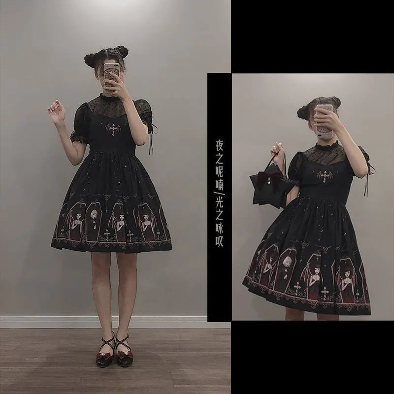 Channel your inner Victorian with this exquisite Gothic Devil Print Dress. With two color styles - Black or White - you will feel nothing less than ravishing no matter which option you choose. The Japanese Style Lolita JSK Victorian Suspender Dress is designed to add a touch of drama wherever life takes you. Lightweight fabric ensures comfort and high quality construction ensures durability. The dress merges into romantic lace trims, creating a timeless look that will never go out of fashion. The sexy sweet vibe of the Goth Bandage Dresses makes it perfect for any special occasion where you want to stand out from the crowd and feel fiercely beautiful too. If you're looking for an outfit to turn heads, this champion piece is certainly the way to go!