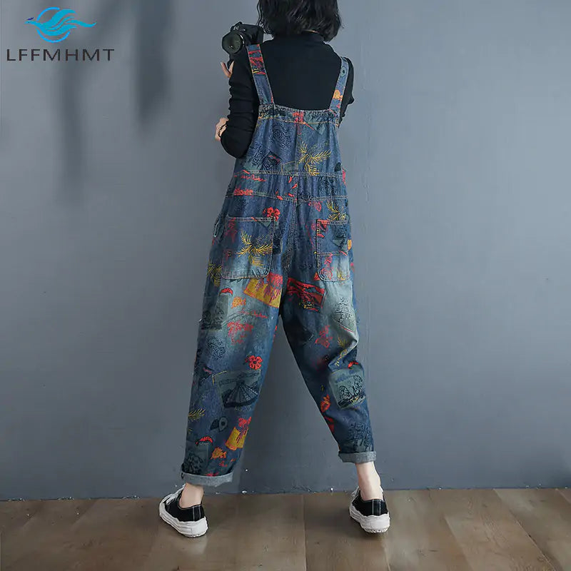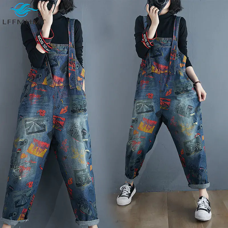 Vintage Print Loose Trousers Baggy Pants