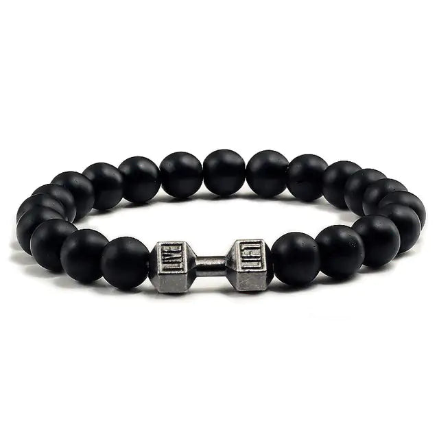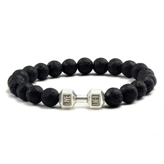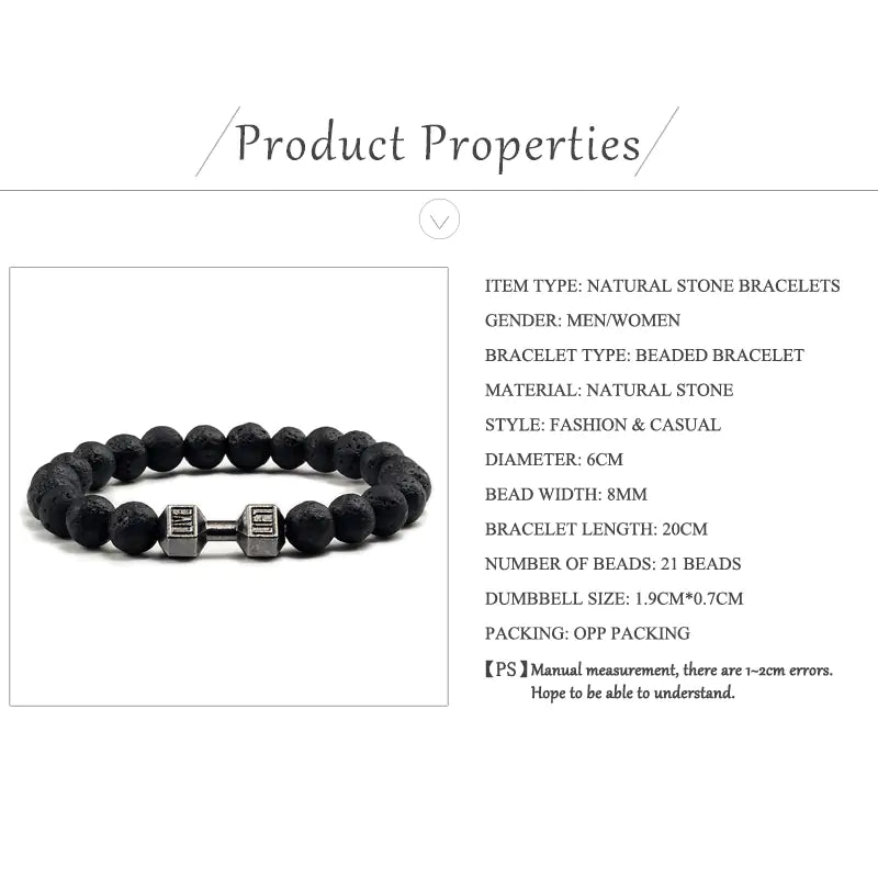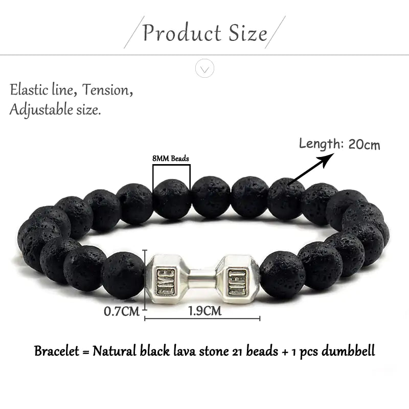 Looking for the perfect fitness accessory that is both stylish and functional? Look no further than the Volcanic Lava Stone Dumbbell Bracelet! This bracelet is made of natural black volcanic lava stone beads and features a matte finish. It is the perfect accessory for any fitness enthusiast, whether you are hitting the gym or going for a run. The dumbbell design makes it easy to grip and ensures that your bracelet stays in place during your workout. The Volcanic Lava Stone Dumbbell Bracelet is a must-have for anyone who wants to accessorize their fitness wardrobe in a chic and unique way!