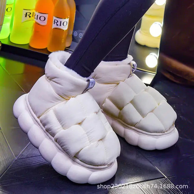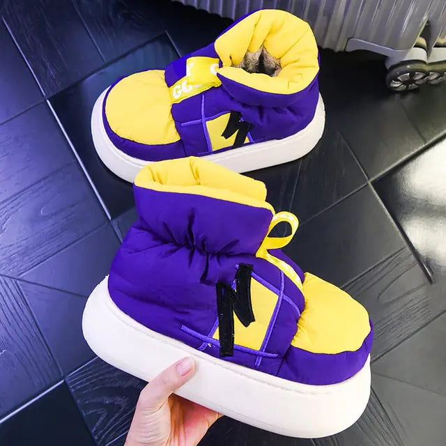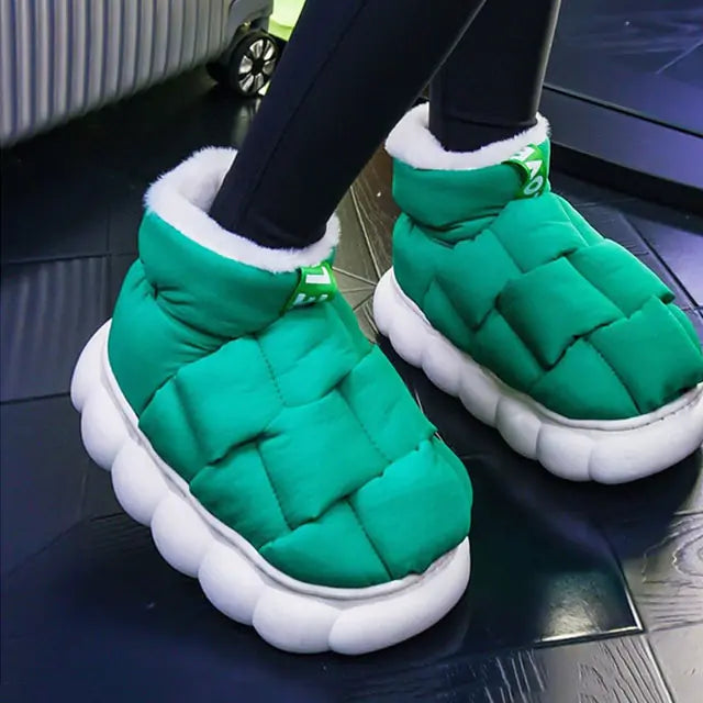 Stay cosy and comfortable this cold season with our Warm Plush Lining Slippers. Crafted from soft material, these must-haves feature a wrapped heel for support and durability, high top-style for a modern look, and lightweight design to keep your feet warm but never weighed down. From lounging in the house or running errands outside, you can trust the Warm Plush Lining Slippers to provide good comfort! Our slippers are perfect for men and women alike, bringing style and functionality together with every step. Show off your taste in fashion with their eye-catching silhouette that provides ultimate winter protection without compromising on design. Add some warmth and character to every outfit without adding extra weight - get your Warm Plush Lining Slippers today!