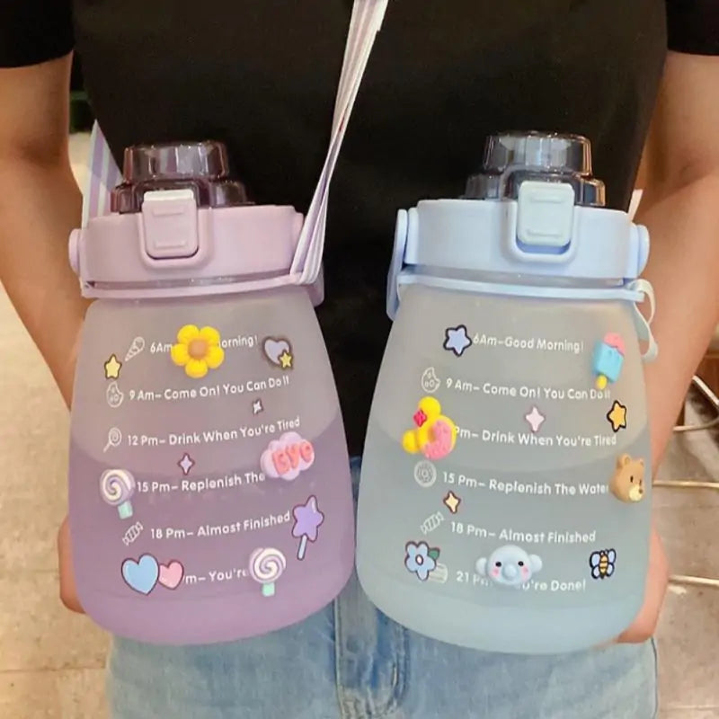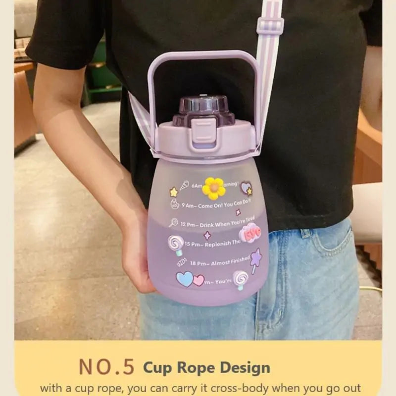 This 1400 ML water bottle is perfect for your next outdoor adventure! The plastic construction is durable and features a safety lock to prevent accidental leakage. The soft silicone nozzle is gentle on your gums, and the cup rope design makes it easy to carry with you on the go.