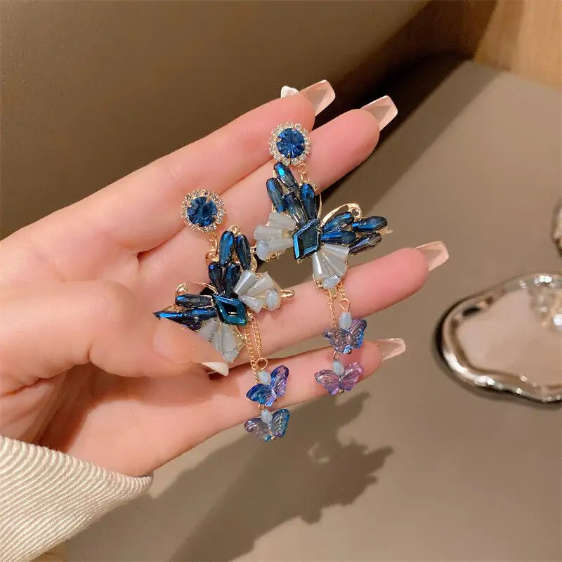 Introducing our new Winter Color Crystal Earrings! These beautiful earrings are crafted from 925 silver and feature a stunning butterfly tassel design. They are perfect for adding a touch of elegance to any outfit and are sure to make a statement. The crystals add a touch of shimmer and sparkle, making them perfect for any special occasion. Whether you're dressing up for a party or just accentuating your everyday style, these earrings are a must-have accessory. Order yours today and add a touch of luxury to your jewelry collection.