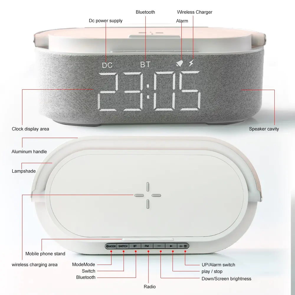 Introducing the Wireless Charging Pad Alarm Clock, a modern and elegant solution to your tech charging needs that effectively combines style and convenience. This desktop alarm clock features a wooden digital LED design that adds an attractive touch to any room and blends seamlessly with other décor. The handy wireless charger quickly and reliably powers up your iPhone 13 or 14, making it easy and convenient to keep your device charged while giving your office or home space a stylish touch. With this all-in-one electronic device, you're guaranteed top-quality charging capabilities plus reliable timekeeping thanks to the built-in alarm clock. Make sure your tech is always energized and get on time for any appointments with the Wireless Charging Pad Alarm Clock!