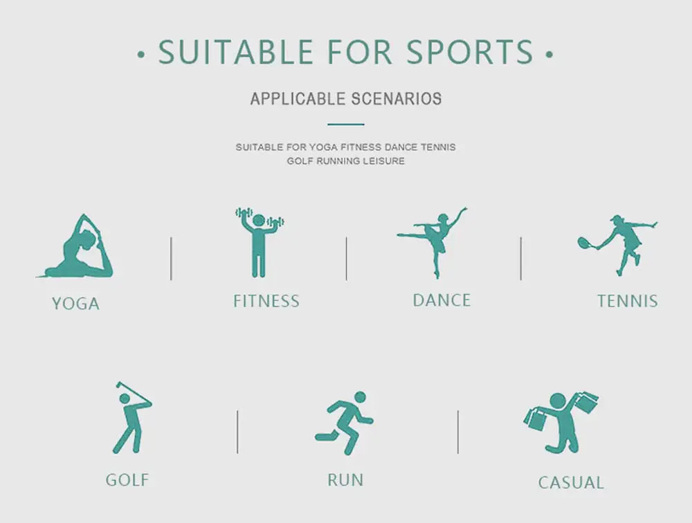 - Occasion: Fitness, Dance, Tennis, Golf, Running, Yoga, Meditation, Crossfit, Outdoor Sports...etc